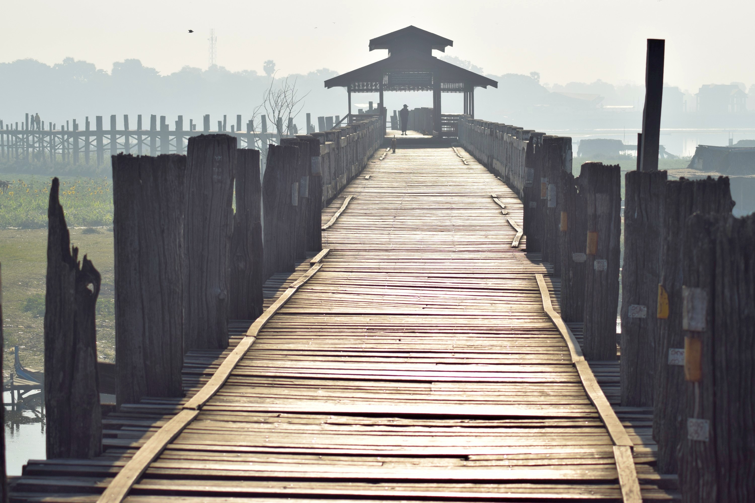 To end with one of the most famous sights in Mandalay, the U Bein bridge. Made mostly of teak (though also concrete in places), it is an understandably photogenic structure, even with low water levels. I got there relatively early in the morning, before the crowds turned up.