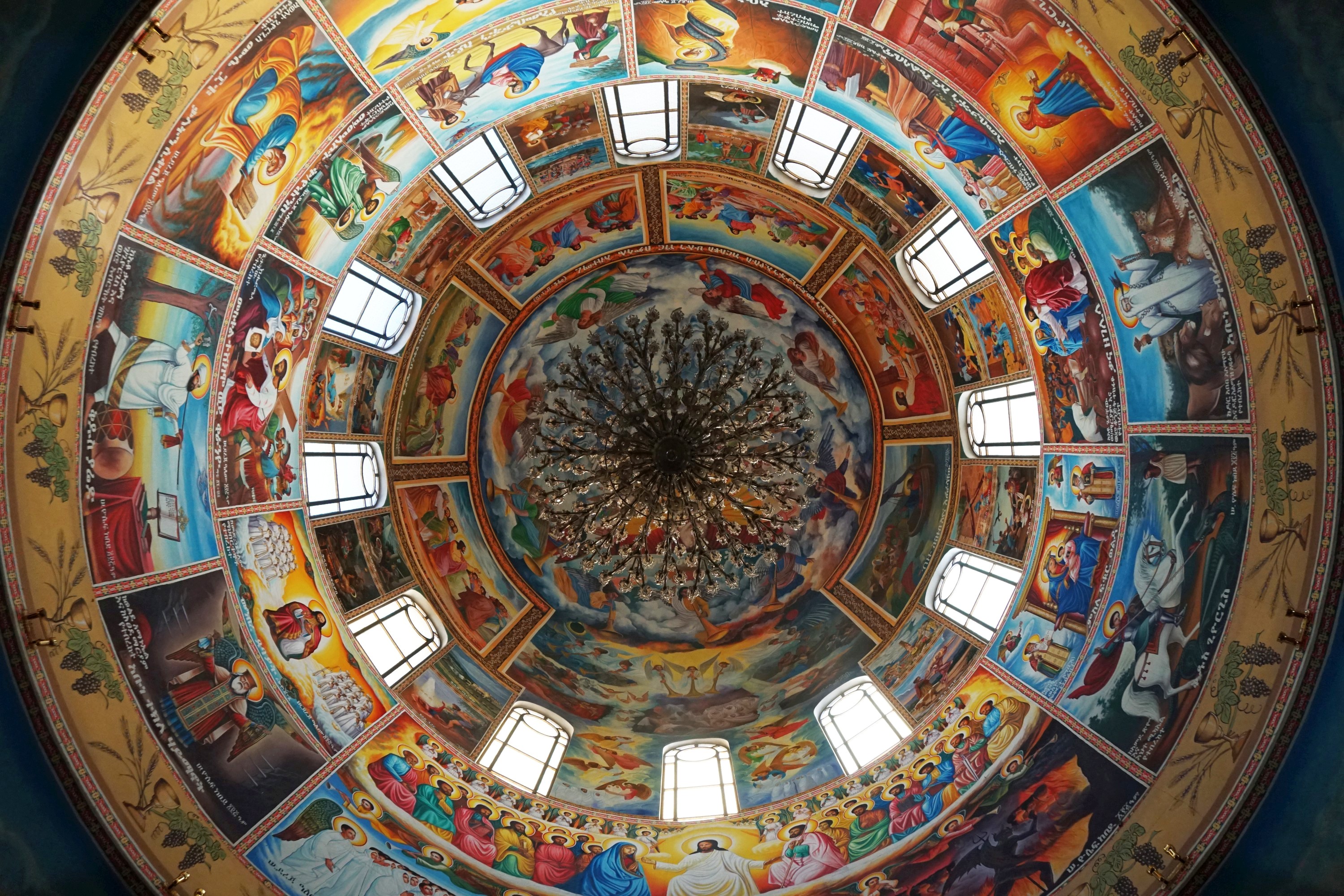 I walked for half an hour to Medhane Alem Cathedral, the largest cathedral in Ethiopia and the second largest in Africa. This was an interesting introduction to scale in Africa as it didn’t seem that large inside, and Africa has a huge Christian population. Built in 1890 it is relatively uninspiring from the outside, but the inside is wonderfully colourful, particularly the dome.