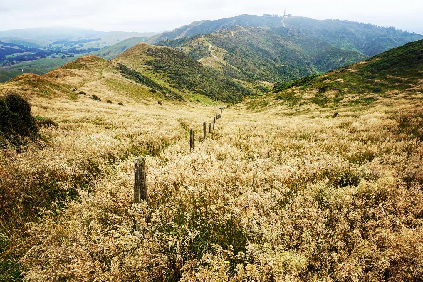From the summit is a steep descent down to Makara Road before heading uphill again through the most sheltered part of the track, through forested areas. Makara Cemetery can be seen in the distance below.