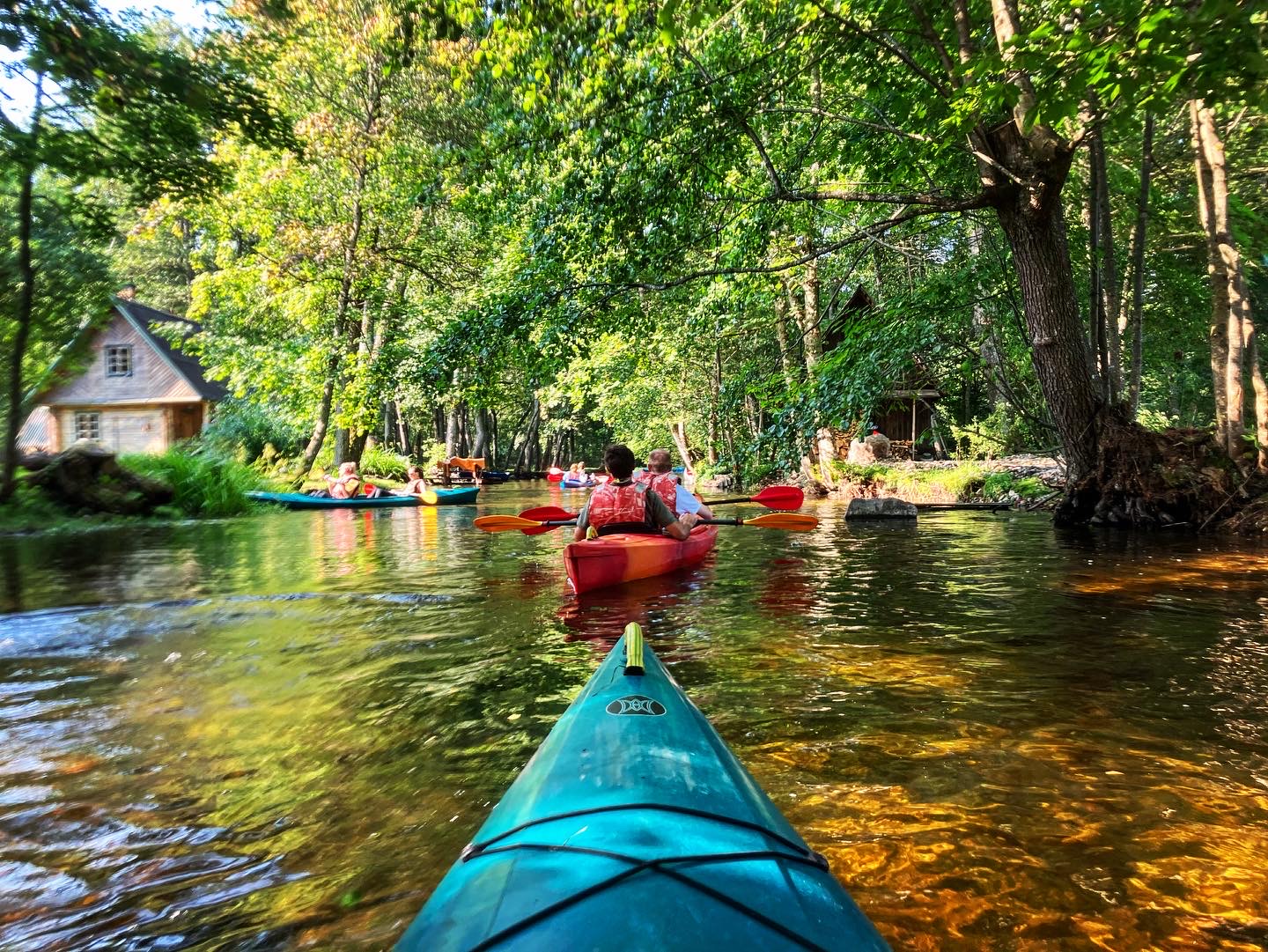 With all the water around a good way to explore the area was by kayak. It was great fun travelling downstream through narrow and shallow streams, dodging weeds, reeds, logs and bridges.