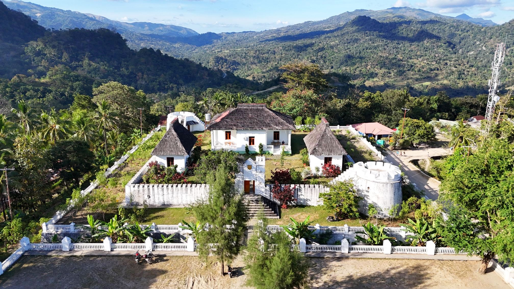 Baguia is home to a Portuguese fort turned hotel in 2014, which makes a good base from which to explore the Matebian area. The fort was built during the government of José Celestino da Silva (1894–1908). It has a double perimeter wall, with the inner wall home to two round corner towers. There is a further enclosed wall area at the front of the fort. Inside the inner wall are three buildings, two self contained rooms with en-suite facilities, and one main building with bunkrooms and facilities. During the Viqueque rebellion in early June 1959, at least a hundred insurgents attempted to take the fort, but were repealed by professional soldiers, though the fort was badly damaged.